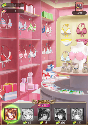 | 経験値 | Lv | ![]() 髪飾り | ![]() 耳飾り | ![]() チョーカー | ![]() ブラ | ![]() パンツ | ![]() 靴下 |