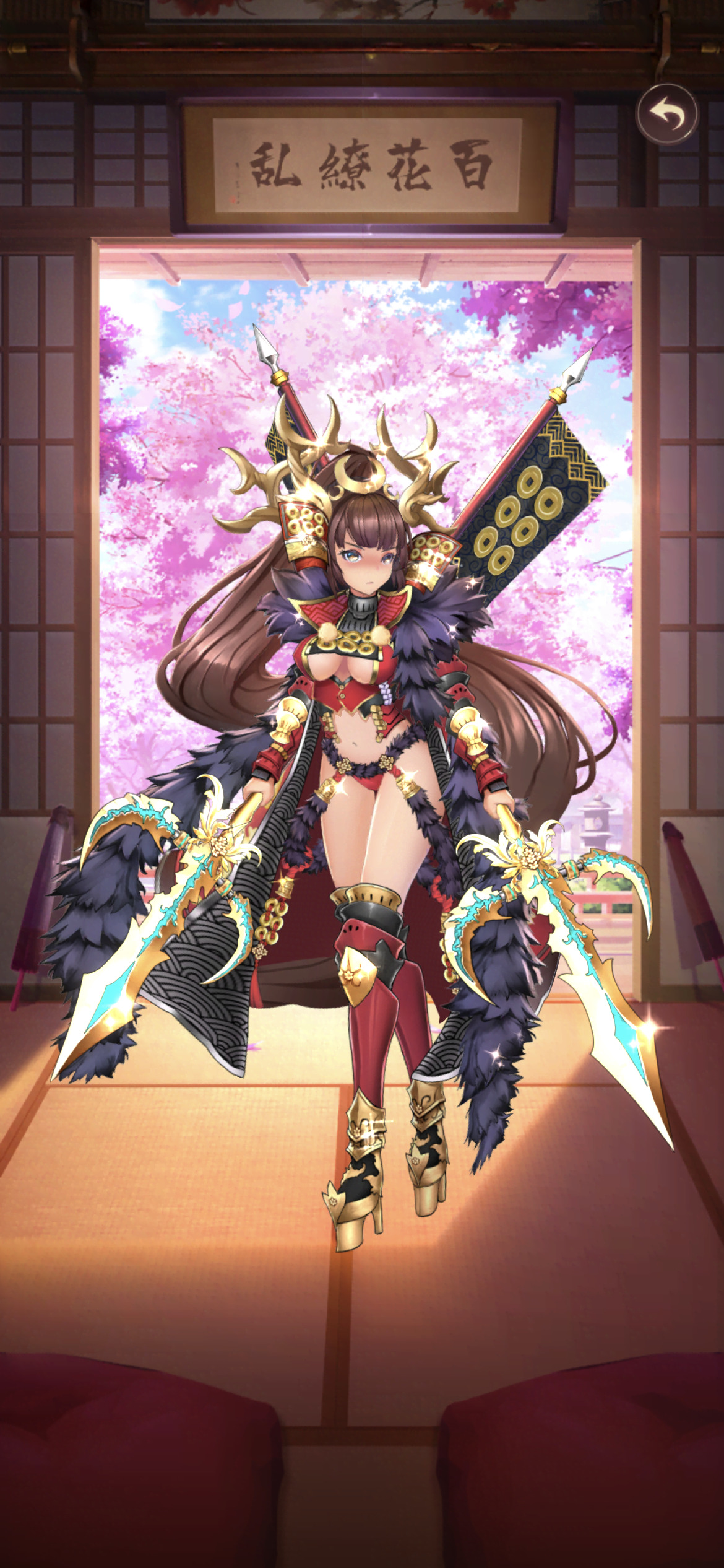 豊臣側についた彼は自らの軍の力を天下に知らしめるべく、鮮やかな赤色メインの甲冑を自分の舞台に装備させたといわれる。