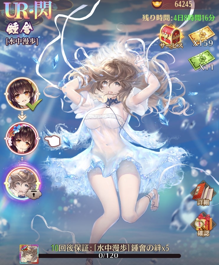 ![]() 鍾会の絆×5 | ![]() 花咲の舞鍾会の絆×5 | ![]() 水中漫歩鍾会の絆×5 |